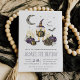 Den ärade Halloween-födelsedagsfest inbjudan är perfekt för din lilla födelsedag! Utkastet har en gnom i en trollkarl, omgiven av pumpor, häckbalar, fladdermöss och ett halvmånsfärande måne. Anpassa med din Halloween-födelsedagsfest i svartvitt och lila.