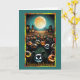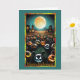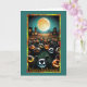 Det här Halloween-kortet har en spooky och en festlig scen under ett glödande fullt måne. I förgrunden tycks en samling av snickade pumpor, var och en med ett unikt och dyrt ansikte, vara kom till livet. Pumpor har animerader som sträcker sig från eländiga grindar till ondskefulla stjärnor, som tillför en lekfull men fläckig atmosfär. Bakgrunden visar ett hemligt landskap med mörk silhuetter av träd och gamla mystiska hus med lysande fönster, vilket ökar nattens höga ambitioner.