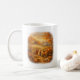 Celebrate the beauty of autumn mornings with this charming Pumpkin Patch Morning coffee mug from the Mug Art Collectibles series. This warm, painterly design captures a peaceful countryside scene where pumpkins are gathered beneath golden fall trees as the morning light spreads across a rustic farmhouse landscape.