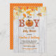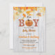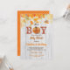 Pumpkin pojke dusch, rustiskt trä. Det är en pojke Inbjudningar