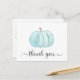 Tack för att du fick ett vykort med en pastellblå vattenfärg av en pumpa och tack i ett snyggt-grått-skript med dekortecken. Anpassa ditt tackmeddelande och namnteckning eller lämna tomt för en handskriven anteckning.