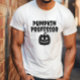 Halloween-temad lärare T-shirt med frasen "Pumpkin Professor". I designen ingår svart typografi för ett tydligt och lättläst utseende. T-shirt är perfekt för lärare som vill fira Halloween på ett roligt och festligt sätt. Texten "Pumpkin Professor" tillför skjortan en liten bit humor och personlighet. Den svarta typografens använda ser till att budskapet står emot T-shirt färg.
