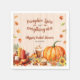 Få rätt anda för säsongen med denna pumpa-spice-tema bröllopsdusch servett. Höstblad faller runt den beige panelerade bakgrunden för att välkomna gäster till den mysigaste höstens bröllopsdusch någonsin. En stor pumpa, höstblommor, ljus, en pumpa-spice latte och en muffins fullbordar scenen. Använd servetten för en höstlig pumpa-spice-tema bröllopsdusch, födelsedagsfest, årsfest, förlovningsfest eller annat höstsammanhang. Finns med matchande produkter.