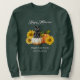 Fallårsodling, eller hembränning, tröja eller t-shirt. Pumpor, svart katt och solblommor med textmallar i tre ställe. Den svarta skuggan och den vita texten visas på en mörk, en skjorta för grönt av skogar. Exempeltexten är "Happy halloween" överst, med gården namn, adress och webbplats under. Välj stil och färg och ändra eller ta bort texten efter behov.