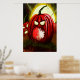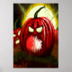 En rött skrikande arg med en pumpa bakom sig, med ett stort måne i bakgrunden, mörken och den dystra färgaden. Detta är en AI-genererad Halloween-konst.