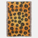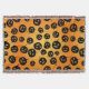 Sömlös utformning av mönster med Halloween pumpor silhouettes på orangens bakgrund.
