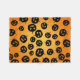 Sömlös utformning av mönster med Halloween pumpor silhouettes på orangens bakgrund.