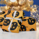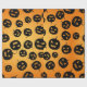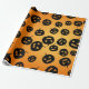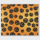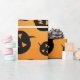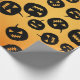 Sömlös utformning av mönster med Halloween pumpor silhouettes på orangens bakgrund.