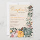 Lite pumpa är på väg! Fira babyduschen i höstens söta andedräkt med orange, vita och dammiga rosa pumpor med grönt vattenfärgsblad och blommor på en beige baksida och elegant modern kalligraftypografi.