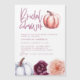 Blommigt och pumpa faller inbjudningskort för möhippan i lila och persika. Med vacker vattenfärgsutformning, blommigt, blad och pumpor. Idealisk höst-/höstdesign.