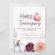 Blommigt och pumpa in thanksgiving-festinbjudan i lila och persika. Med vacker vattenfärgsutformning, blommigt, blad och pumpor. Idealisk höst-/höstdesign.