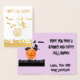 Just i rätt tid för Halloween har den här konstruktionen en silhuett av pumpor vid grund. En stor orange pumpor åtföljs av ett hotfullt träd och ett spöke som lurar bakom sig. Ovanför, ta flyget från många fladdermus. På kortets framsida visas utformningen i folie. Du kan anpassa bakgrunden färg på kortets insida. Byt bara ut namn mot ditt på insidan för att anpassa det.