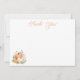 Ett platt tack med vattenfärgspumpor och blommor på rosa orange. "Tack" är i orange med visuellt kursivt teckensnitt. Perfekt för babydusch eller födelsedagskalender tackkort.
