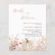 En elegant Baby i Bloom Baby Shower-inbjudan. En vit bakgrund Dekorerad med vattenfärgade vilda blommor i beige, rosa och en färgad-pumpkin. 1 lakan = 1 inbjudan tryckt kant till kant.
