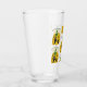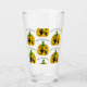 Detta glas har orange pumpor, svart spöken och stjärnor och måne med ord "Happy halloween" ovanför konstruktionen.