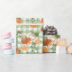 En söt som är papper av grönt och vitkontroll täckt av orange pumpor