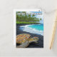 Punaluʻu Black Sand Beach lies along the Big Island’s rugged southeastern coast, where finely ground basalt sand forms a deep, charcoal shoreline against the blue Pacific. Coconut palms lean toward the water, and lava rock frames the beach, creating a striking contrast of textures and colors. The sound of waves rolling over black sand gives the area a calm, rhythmic atmosphere shaped by volcanic forces.