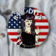 Punk Gothic Girl, som flådde den ge trenden dam vid Hand plockade tecknaden vid mitten finger. Anti-Trump Pro Biden-demonstration eller protestknapp.