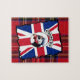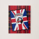 Lustigt guineafowlfågelkollage med en mohikansk hårstil med och en anarkitext med en röd vit och blå brittisk jack och en royal Stewart Scottish tartan-bakgrund. Om du vill matcha pärlhönsprodukter och fler animaliska roligtar går du till VINTAGEPRINTSORE.
