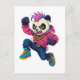A fierce cartoon panda with a punk hairstyle, hoodie, and gold chain leaps forward with rebellious street attitude and bold urban style.