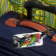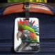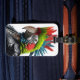 Lustigt Punk Rocker Parrot med mohikanskt hårstil med läder jacka.