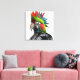 Lustigt Punk Rocker Parrot med mohikanskt hårstil med läder jacka.