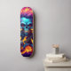 Detta konstverk visar en punkrock-döskalle prydd med en livfull, mångfärgad mohawk. Döskallen spelar energiskt en gitarr, omgiven av dramatiska flammor och virvlande rök i bakgrunden. Scenen fångar den rebelliska och dynamiska andan av punkrock, och blandar djärva färger med intensiv action för att skapa en kraftfull visuell effekt.