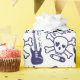 Djupblå Goth döskallar- & gitarrmönster med säkerhetsnålar. Diagram av Lilly Bimble.