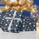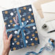 Modern julomslutning papper med blå, vit och " guld" punkter med namn på mörk blått bakgrund. Anpassa texten enkelt. Du kan inte bara använda det till jul - Kate Eden Art