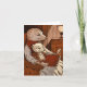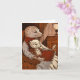 Bilden visar en varm scen med två illrar, en vuxen och en ung, sitta i en skyddsstol av trä. Vuxens iller, som bär en röd och vit halsduk, har ett stort bok med röd bindning, medan den yngsta, som bär glasögon, sitter bekvämt på sin höft. Rummet är lätt belyst av en lykta som placeras på sidan bord och ger en varm glöd på scenen.