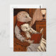 Bilden visar en varm scen med två illrar, en vuxen och en ung, sitta i en skyddsstol av trä. Vuxens iller, som bär en röd och vit halsduk, har ett stort bok med röd bindning, medan den yngsta, som bär glasögon, sitter bekvämt på sin höft. Rummet är lätt belyst av en lykta som placeras på sidan bord och ger en varm glöd på scenen.