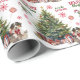 Det upprepade mönster på denna papper för julomslutning innehåller en bild av en valp i Australian shepherd med en röd båge som tittar ut från ett torkat basket. Basket sitter bredvid ett dekorerat Helgdag träd. Stiliserad röd text och grönt säger GOD JUL", och din egen namnteckning finns i två fält för att du ska kunna anpassa den. Andra bilder som ingår i mönster är rött dekorativt snöflingor, polkagrisar och en peppermint lolly pop. Cute!