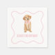 Preppy puppy golden hämmande födelsedag med rosa båge och vågigt ram.