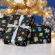 Puppies In Space Watercolor Dog Astronauts Black. Adorable colorful dog astronauts in outer space with planets and shooting stars.
