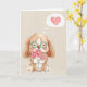 Vattenfärgad valpen hund med rosa blommor på mjuk spiralbakgrund med tankbubbla och rosa hjärta. Bakgrunden till färg kan ändras.