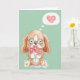 Vattenfärgad valp med rosa blommor i gröntens bakgrund med tankbubbla och rosa hjärta. Bakgrunden till färg kan ändras.