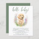 Inbjudan dina vänner och din familj för att fira din nyfödd bebis-pojkes ankomst med denna beundransvärda gyllene barnduschinbjudan, tillbehör och gåvor från party. Den här inbjudan till babyduschen innehåller en handmålad guldfärgad hämtare, perfekt för hundälskare! Utformningen är modern och trendiget, med ett sage grönt färg och "hej baby"-text för att fira nyfödd bebis kommande ankomst. COPYRIGHT © 2023 Judy Burrows, Black Hund Art - Med alla Höger reserverade. Hej Baby Puppy Hund Modern Sage Grönt Baby Shower-inbjudan