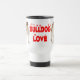 Den här roligt hund-kaffet mugg har en brun och vit engelsk bulldog-valpen hund som markeras mot en skarp vit bakgrund med Bulldog Kärlek tryckt i ett fet rött stil.