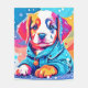 En färglös och söt konst av en valp med blå jacka (denna design gjord med AI). Ställe beställer i dag och Kämpa på köpet!