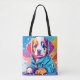 En färglös och söt konst av en valp med blå jacka (denna design gjord med AI). Ställe beställer i dag och Kämpa på köpet!