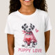 Den här beundransvärda flickans t-shirt är perfekt för unga hundälskare! Med frasen "Puppy Kärlek" i ett sött och lekfullt teckensnitt ger den charm och roligt till alla konturer. Utformningen visar en oemotståndligt söt Dalmatisk marionett som bär en liten skjorta med ett hjärta och som tillför extra söthet till utseendet.
