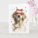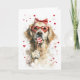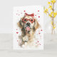En charmerande gyllene hämtare med hjärtformade glasögon och en pulserande röd båge som håller en candy cane-glapp, omgiven av spridda röda hjärtan. Perfekt för att skicka varm och lekfull Valentindag önskemål.