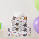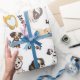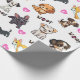 Denna förtjusande pappra omslutning med hund har en lekfull och hjärtslitande mönster av söta valpar, Fransk av snyggt, fluffa spaniel, lycklig corgis, dalmatiker, dachshundar och till och med en charmerande katt! Den här designen är tass avtryck, hjärtan och ord "Woof", perfekt för djurälskare, hundägare och alla som älskar söta djur. Den svarta bakgrunden gör att färgfulla illustrationer dyker upp och skapar det som ett underbart val för presentomslagning, hantverk och DIY-projekt.