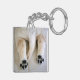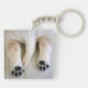 Tittar på baksidan av den lilla Golden Retriever-valpen, med söta fluffa svan och svarta tass-dynor.