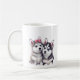Start your day with love, this beautiful coffee mug brings a soft, heart-filled moment to someone's day. The front features two cuddly husky pups framed in roses, with a gentle “Happy Valentine’s Day” banner and tiny drifting hearts. The back is a smooth and shows two huskies on a plain background.