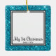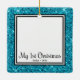 Den här vackra marionettens första jul 2-fotodekoration med ett aqua glitter kant, ord "Min första jul", hund namn och året kommer att se vackert ut på träd. Du kommer att värna om det och njuta av att ta ut det varje år för att sätta på dig träd.