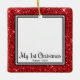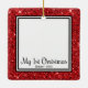 Den här vackra marionettens första julfoto med ett rött glitter kant, ord "Min första jul", hund namn och året kommer att se vackert ut på träd. Du kommer att värna om det och njuta av att ta ut det varje år för att sätta på dig träd.