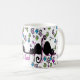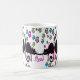 Kats vita svarta kaffekaffe kopp är designad av Kelly som får din bil att purra!