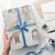 A vibrant, rich, and joyful design featuring a wide variety of illustrated children characters in traditional and creative Purim costumes. The collection includes festive clowns, bride and groom, queen, construction worker, Shtetl characters, and more, all drawn in a soft and sweet Kawaii style. The design conveys a spirit of community, joy, and festive Jewish tradition. These illustrations are perfect for Mishloach Manot wrapping paper, sticker sheets, holiday party invitations, and any Purim-themed craft items.