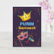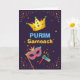En festscen med mask, guldfärgad krona med juveler och en groggare brusproducent omgiven av konetti finns på omslaget till detta Purim Sameach-hälsningskort. Anpassa omslagstexten och det inre meddelandet som du vill. Image and verse © Shoaff Ballanger Studios, 2024.